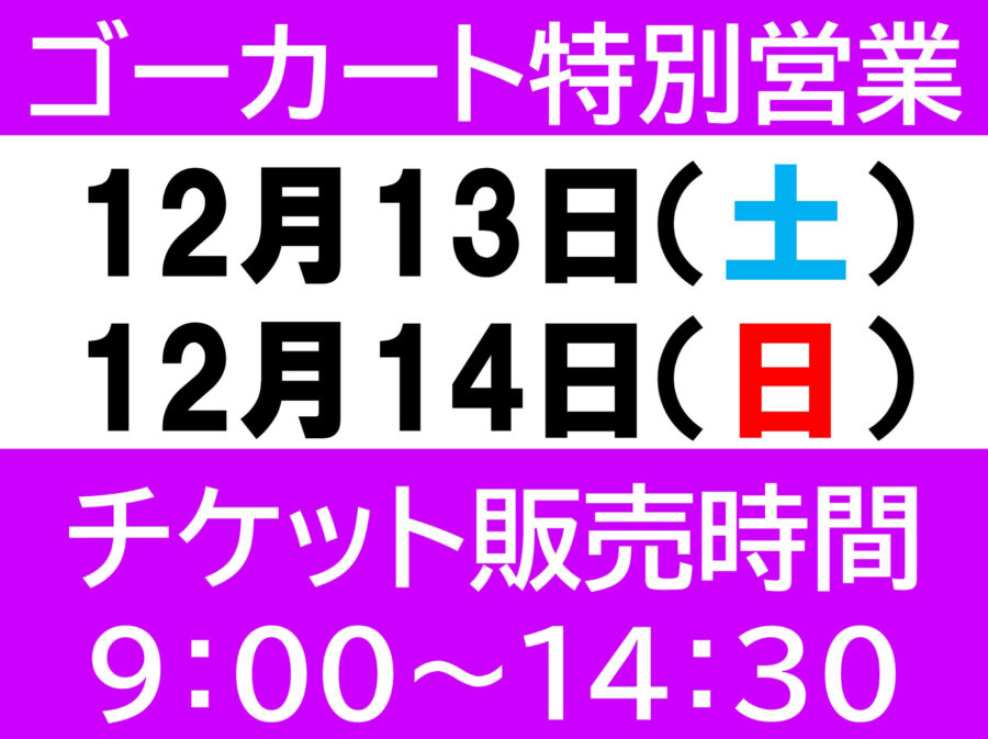 ゴーカート特別営業を行います!!この2日間が年内最後の営業となります。
